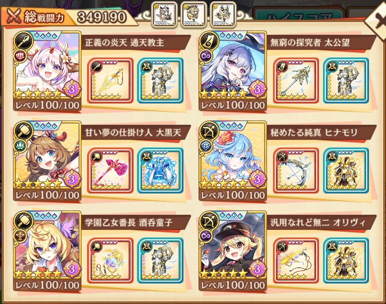 私も最適編成を組めるのですが,レベル350を3Pで倒すのはまだまだ難しいです.