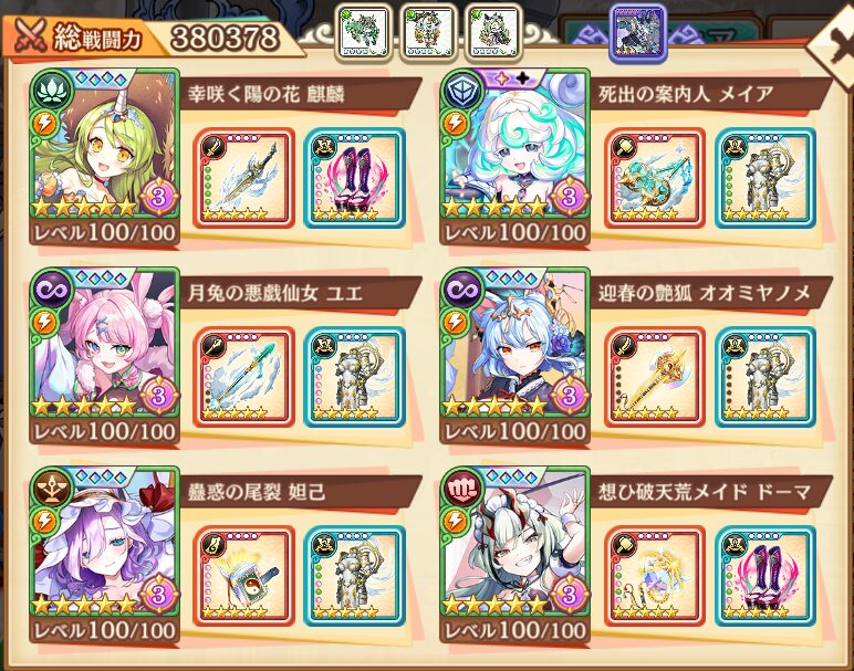 先月はスキル編成と通常攻撃が半々くらいでしたが,今月は通常攻撃編成一択でした.