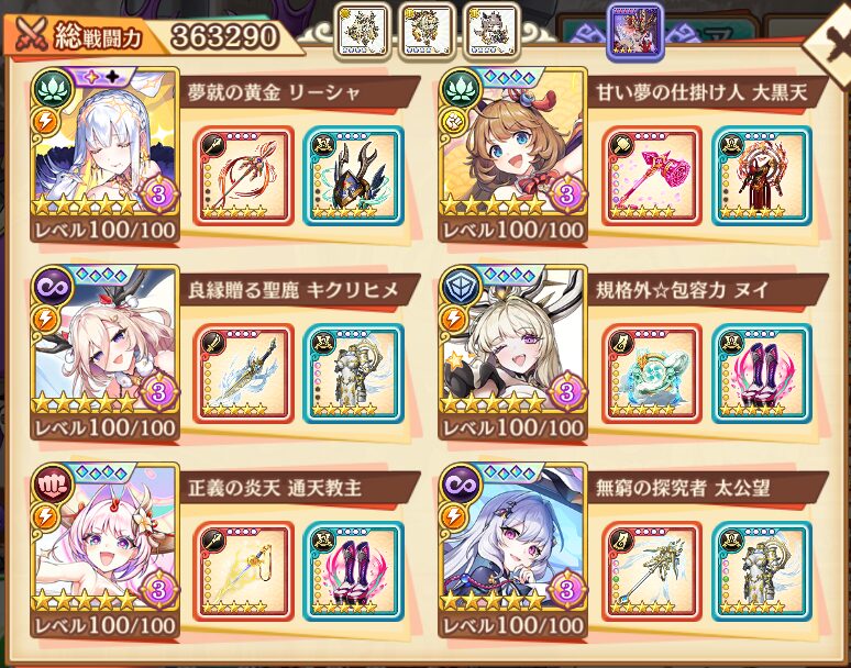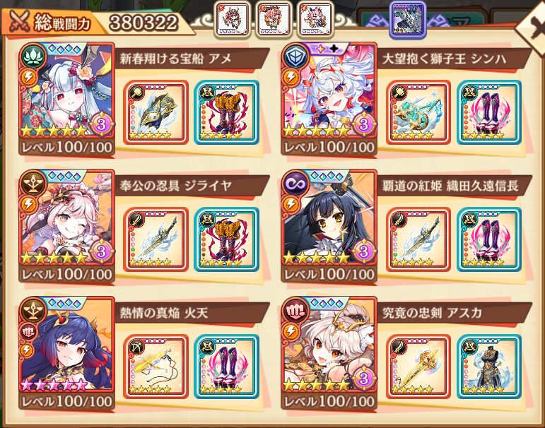 上記画像の編成ばかりだったのでこれが今の最適編成のようです.