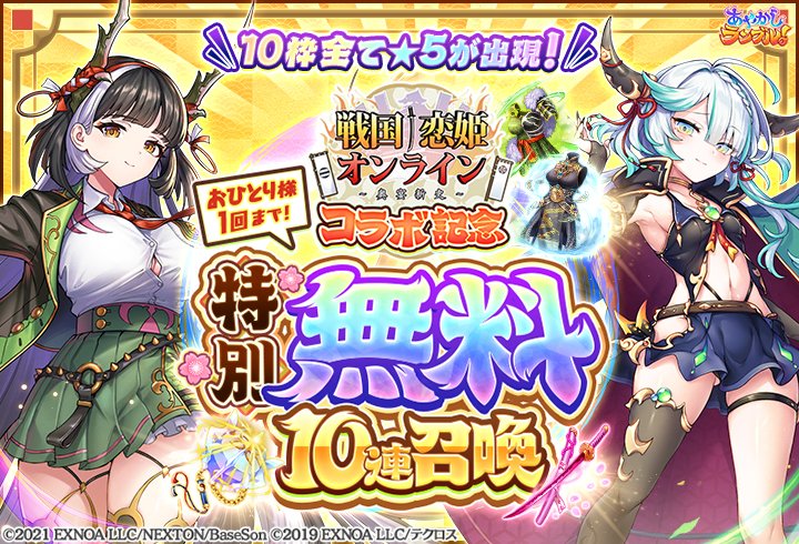 2026年2月27日から戦国†恋姫オンライン〜奥宴新史〜とのコラボを記念して戦国恋姫OLGコラボ記念!特別無料10連召喚が開催されました.