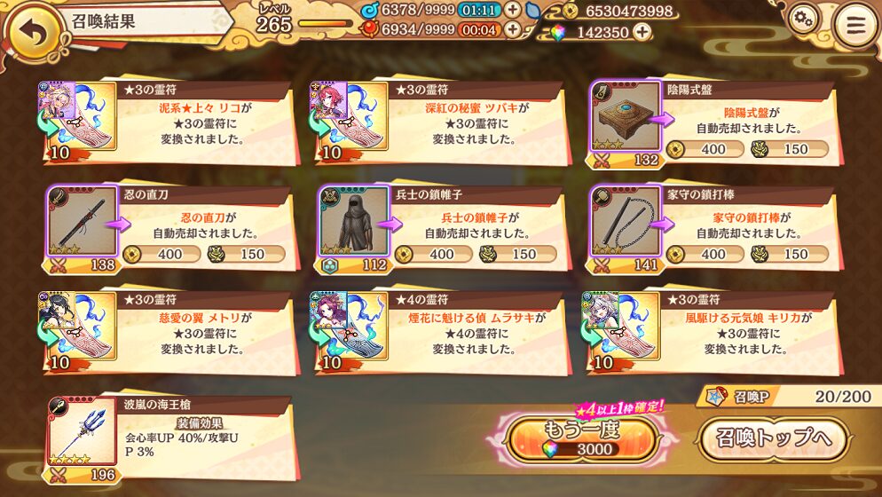 これくらいバンバン当たるなら霊晶石(有償)でガチャを回してもいいなって思えますよ.