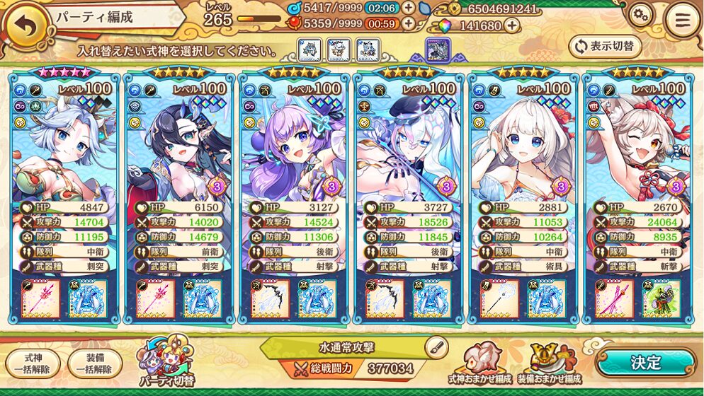 今の水属性通常攻撃編成3Pはこんな感じらしいです.