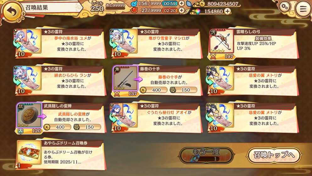 4. あやらぶドリーム召喚10連ガチャ3回目の結果