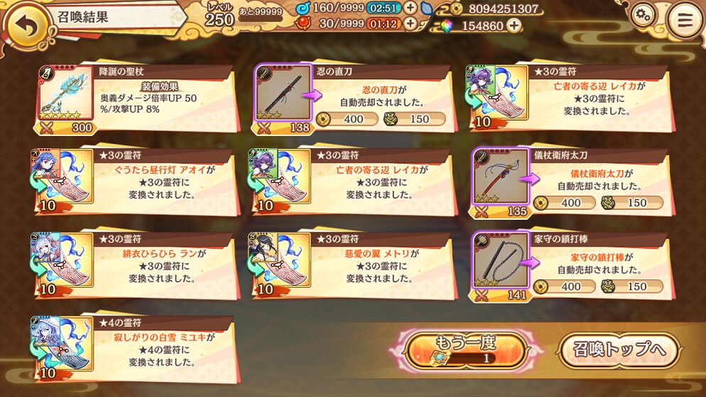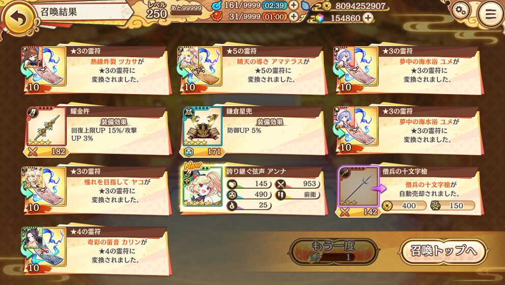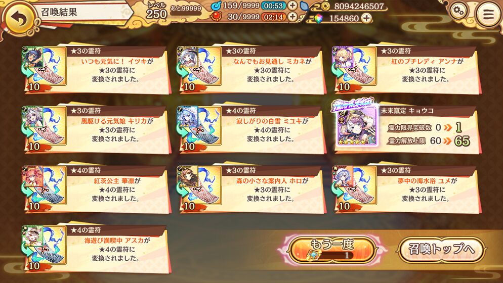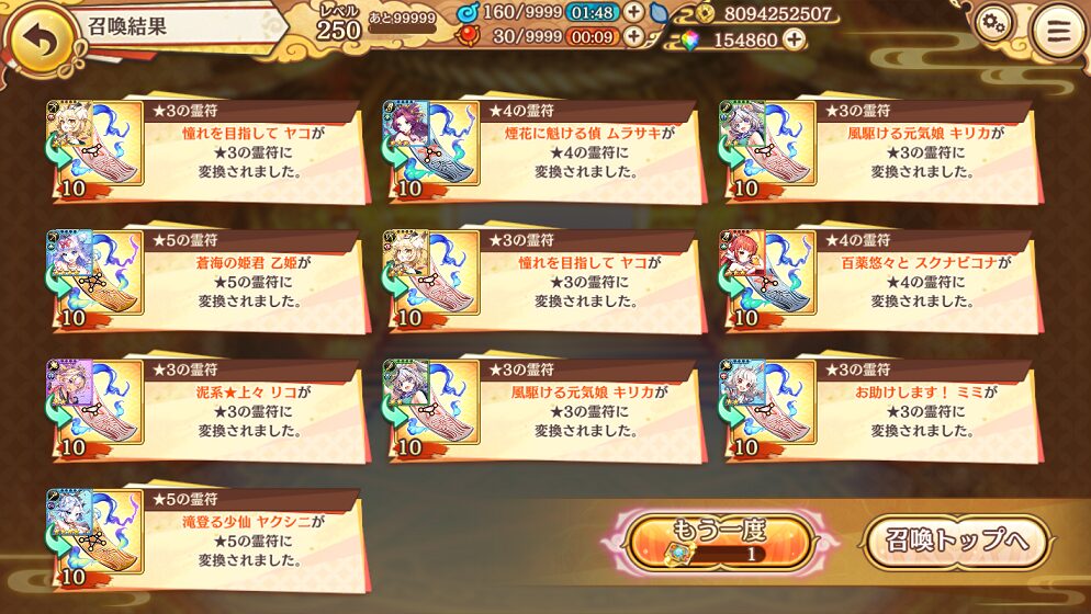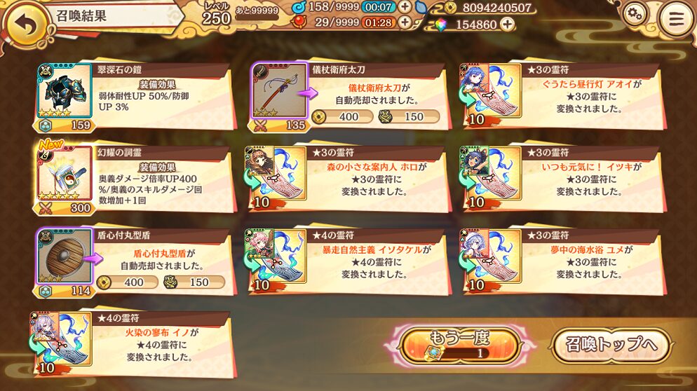 幻耀シリーズと未所持の★5式神を入手できたので満足です.