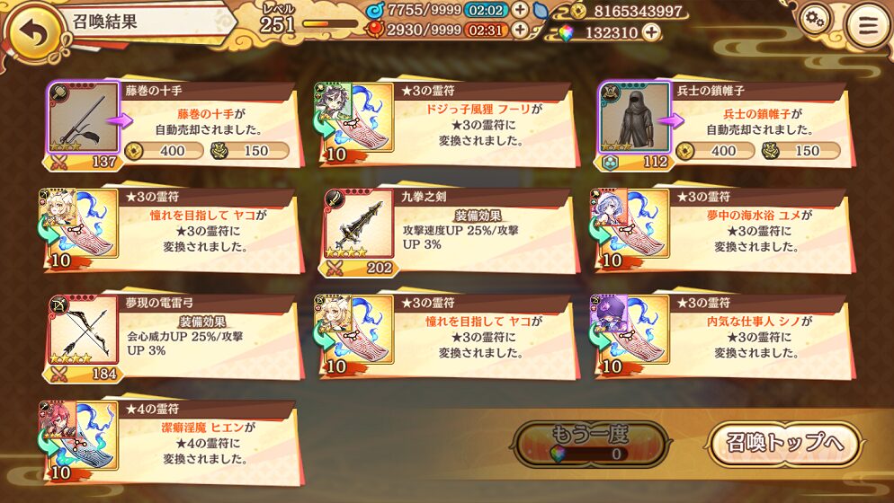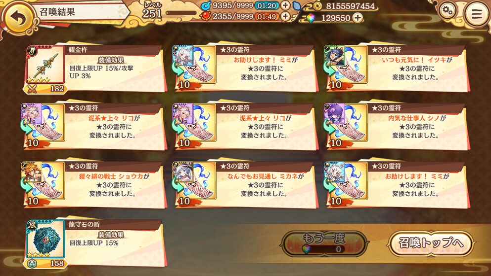 4. 10月22日の無料10連ガチャ結果