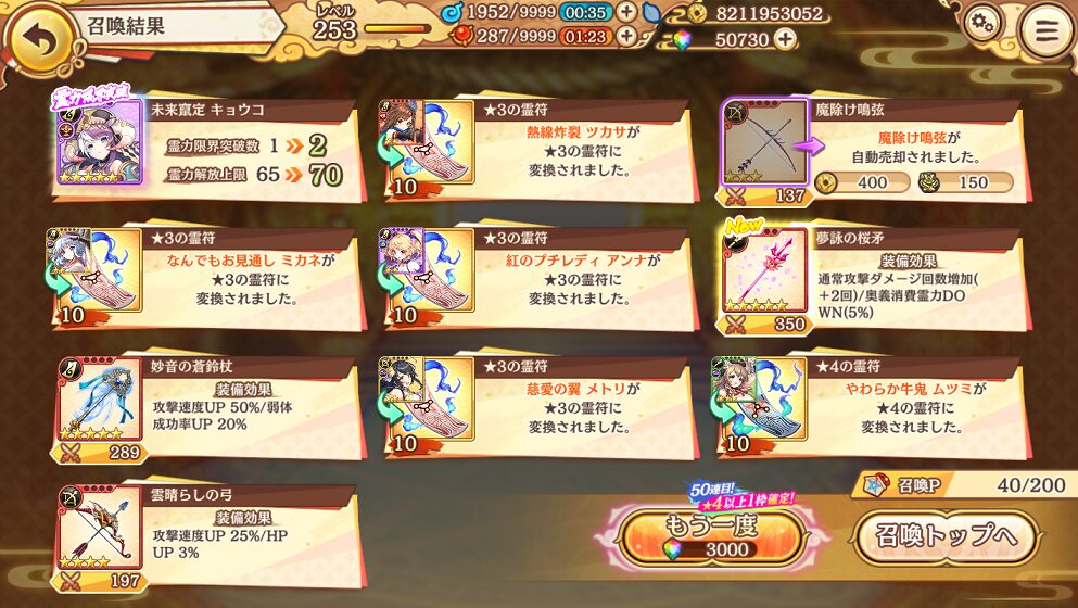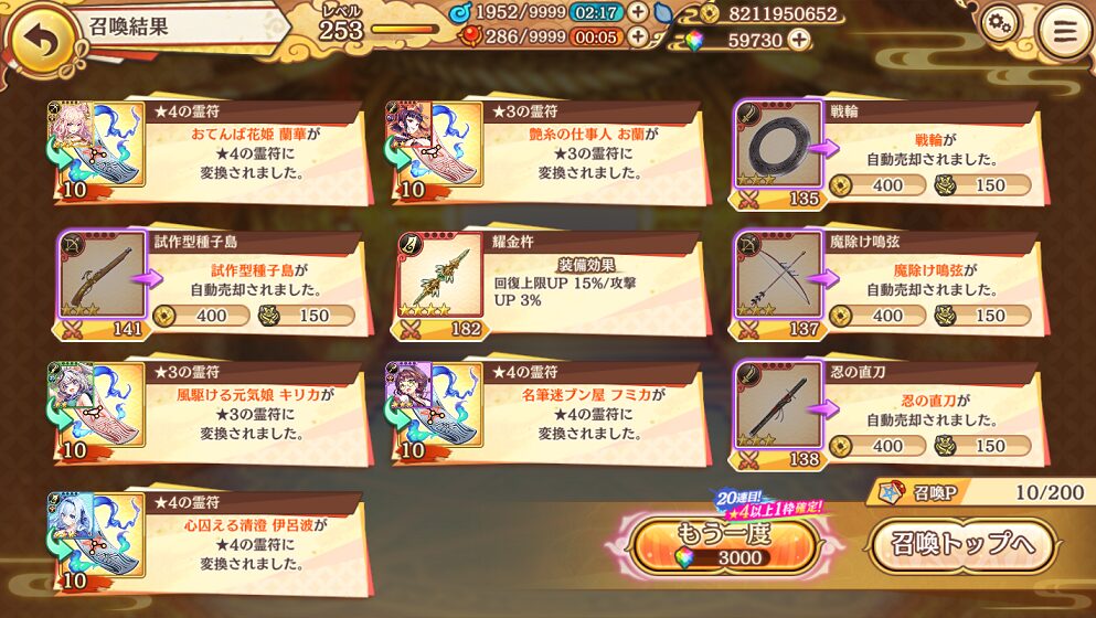 ただ,これを使うわけにはいかないのでキクリヒメと日天は我慢するしか….