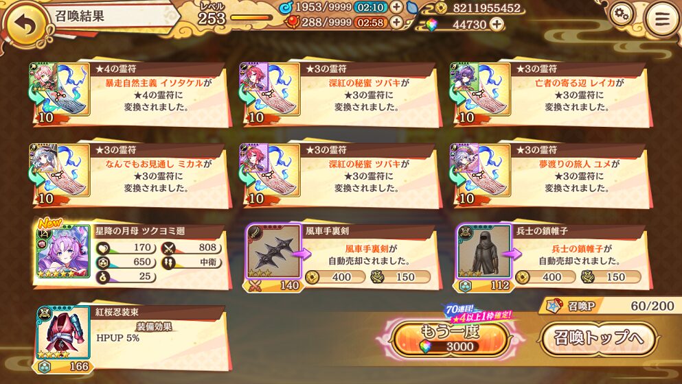 今回は60連で[星降の月母] ツクヨミ廻を入手しました.