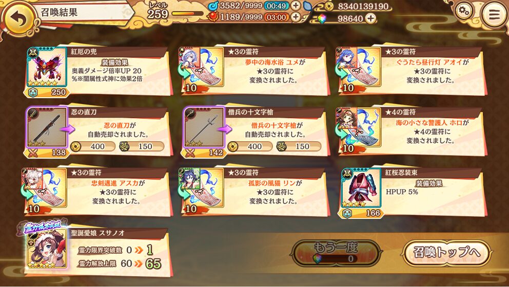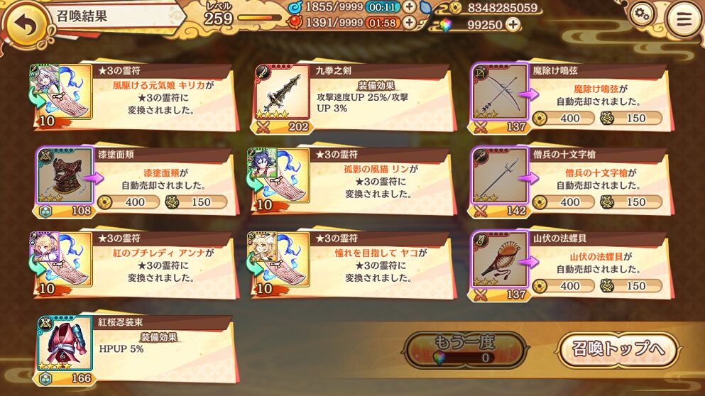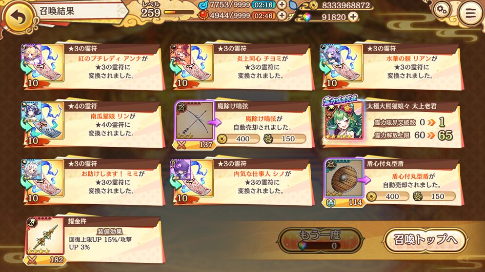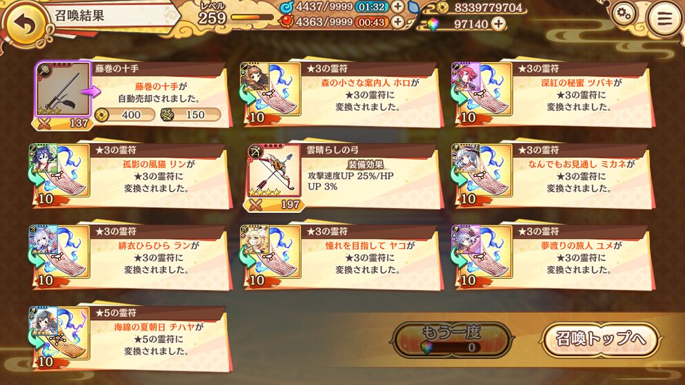 ようやく未所持の★5式神を引けて嬉しいです.