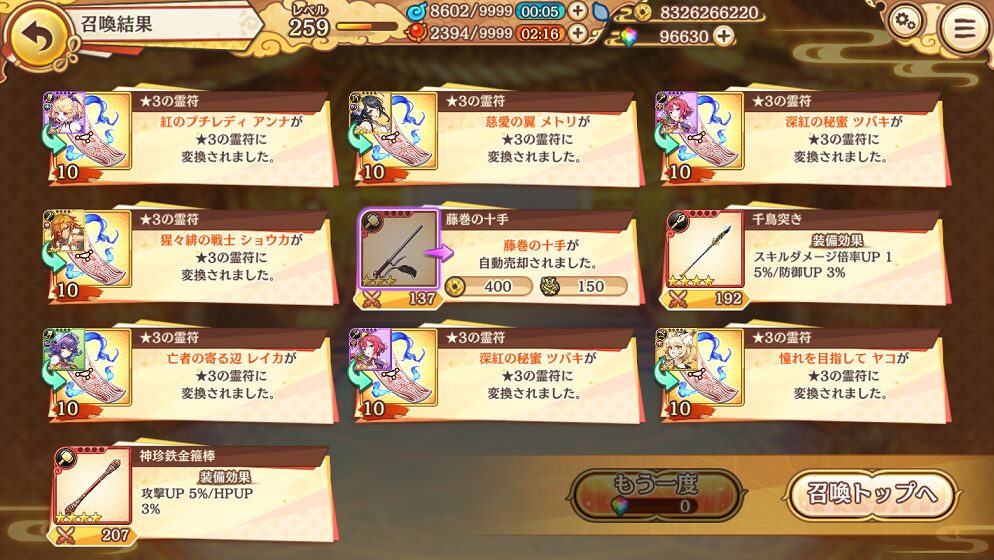 8. 1月2日の無料10連ガチャ結果