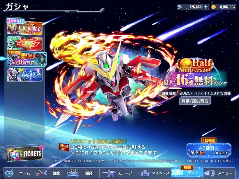 2025年9月30日からジージェネエターナル ハーフアニバーサリー記念無料46連ガチャを回せるようになりました.
