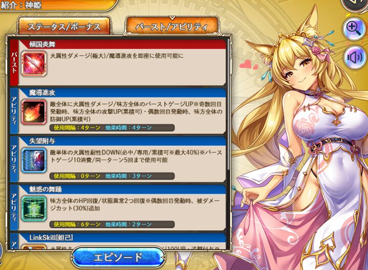 特筆すべきは4アビで戦闘中1回だけ火属性キャラの特殊攻撃UP & バーストゲージ100UPが使えることです.