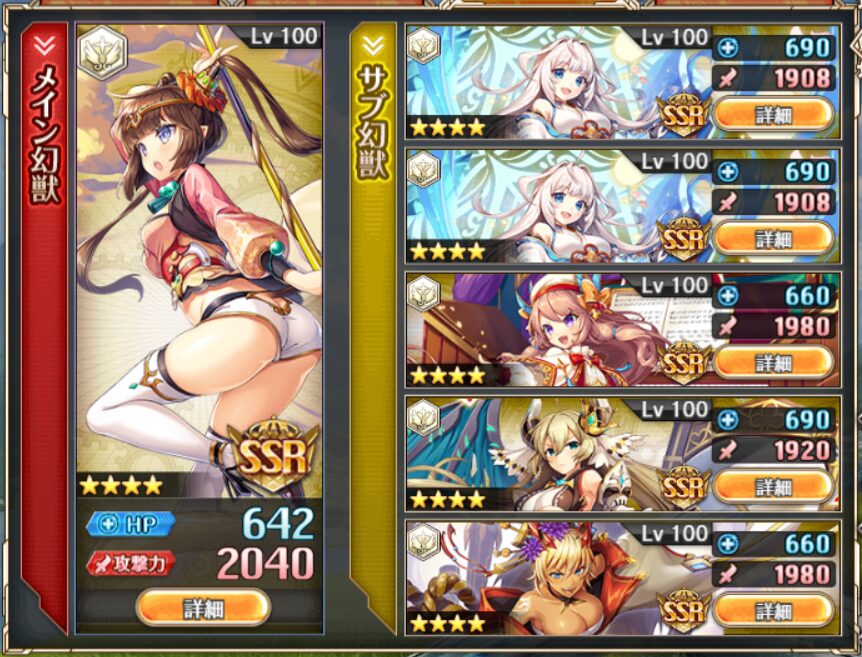 メイン幻獣は基本的に属性攻撃力UPの幻獣を選びます.