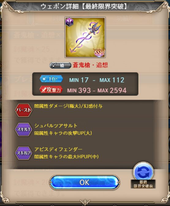 2. SSRウェポン 蒼鬼槍・追想(最終限界突破)