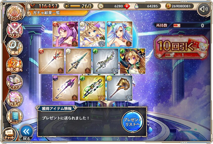 なお,ガチャ結果はSSRが当たった場合のみ載せます.