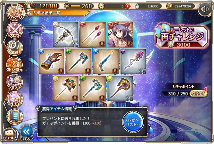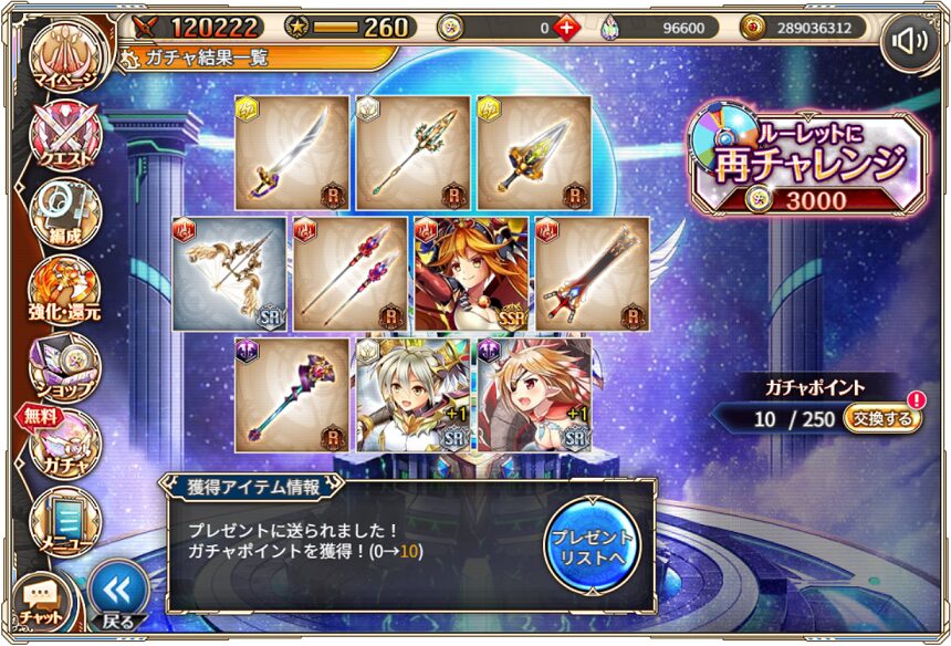 7. 4月18日の無料ルーレット10連ガチャ結果(通算250連)