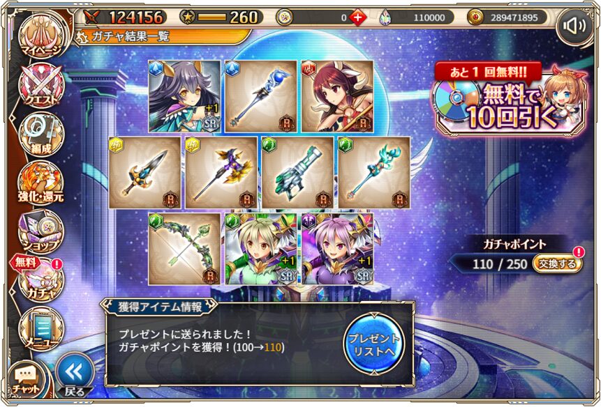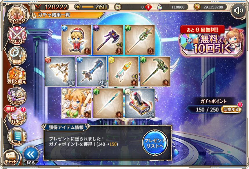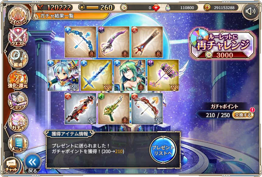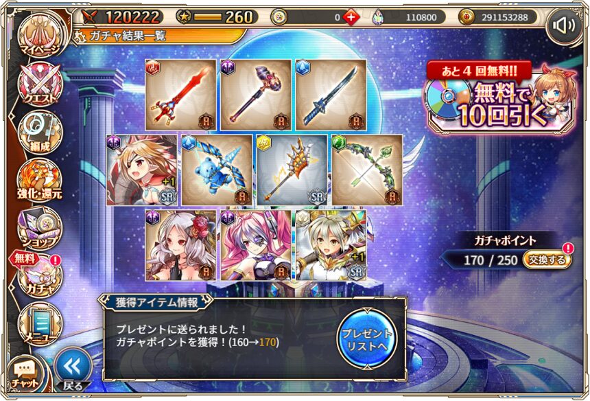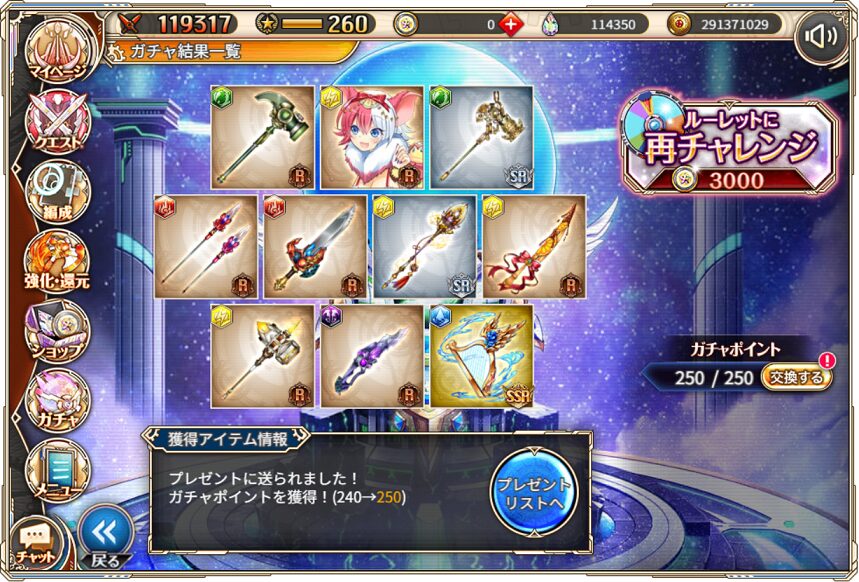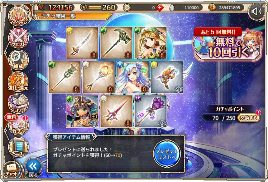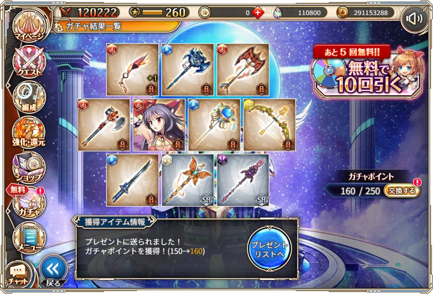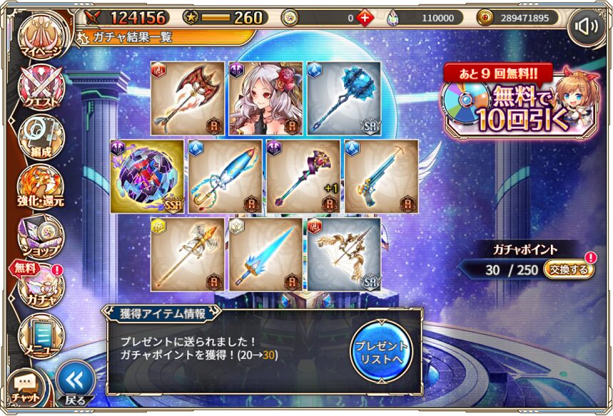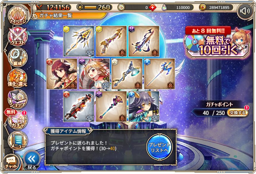 無料ガチャ360連の成果はSSR神姫8体&SSR幻獣5体でした.