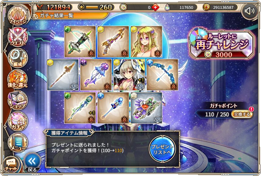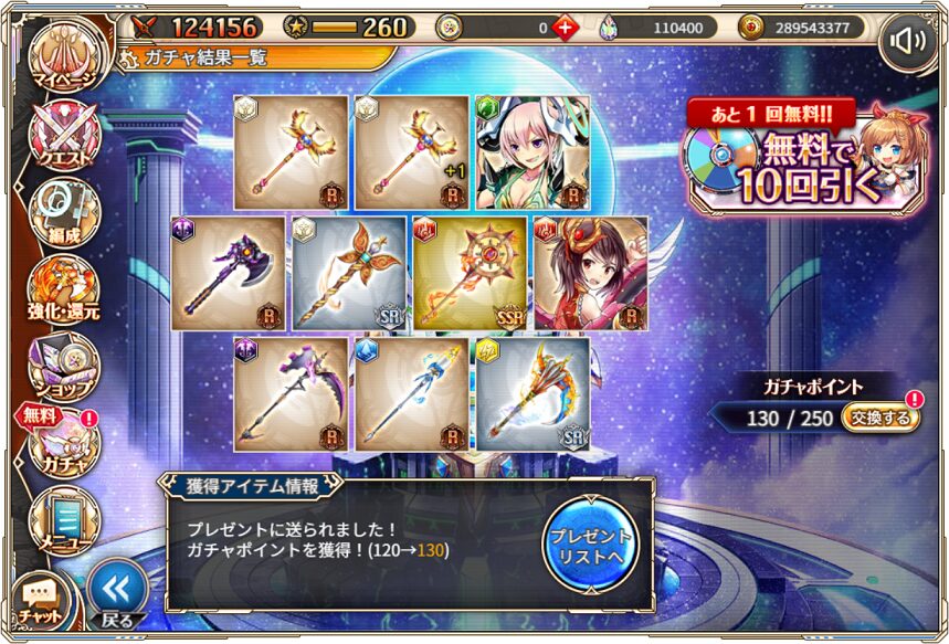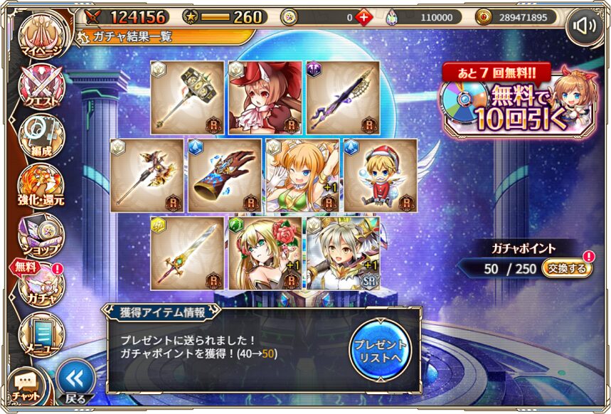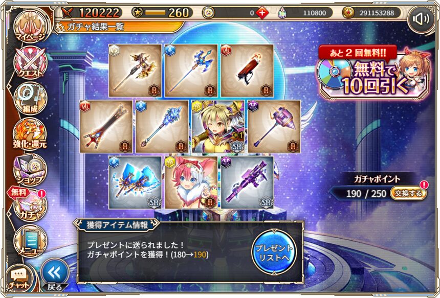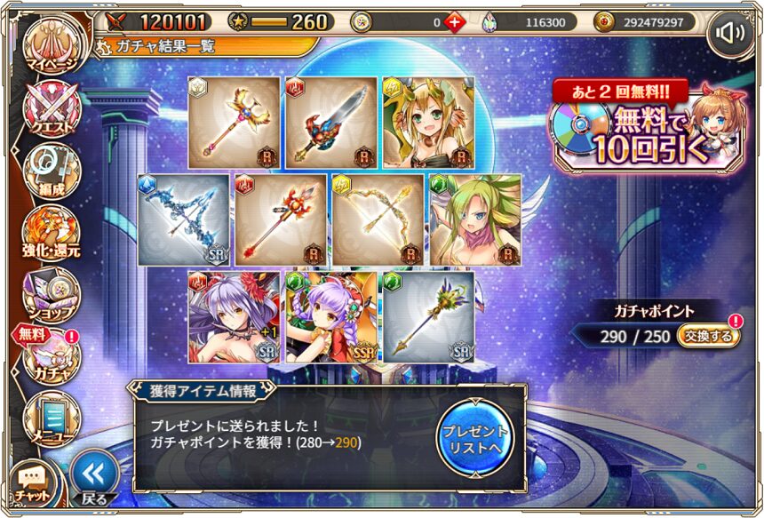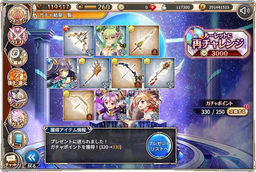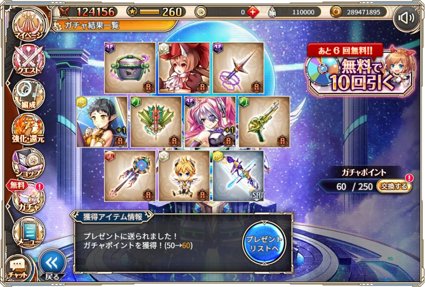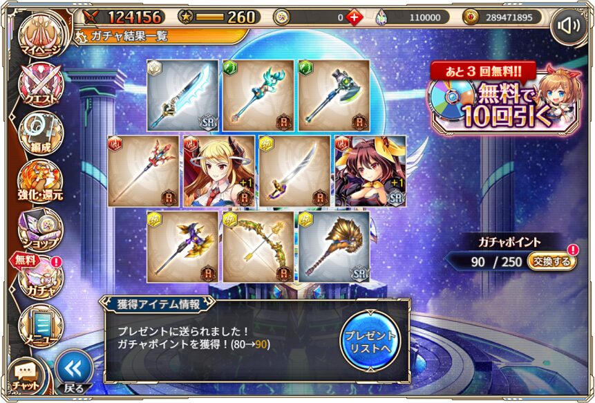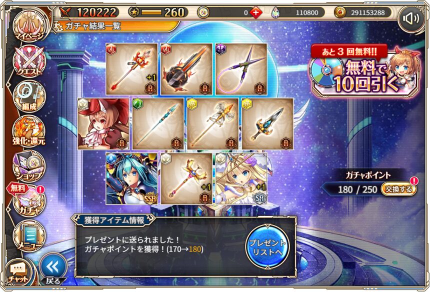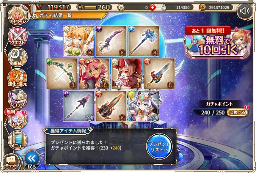 無料ガチャ360連の成果はSSR神姫8体&SSR幻獣5体でした.