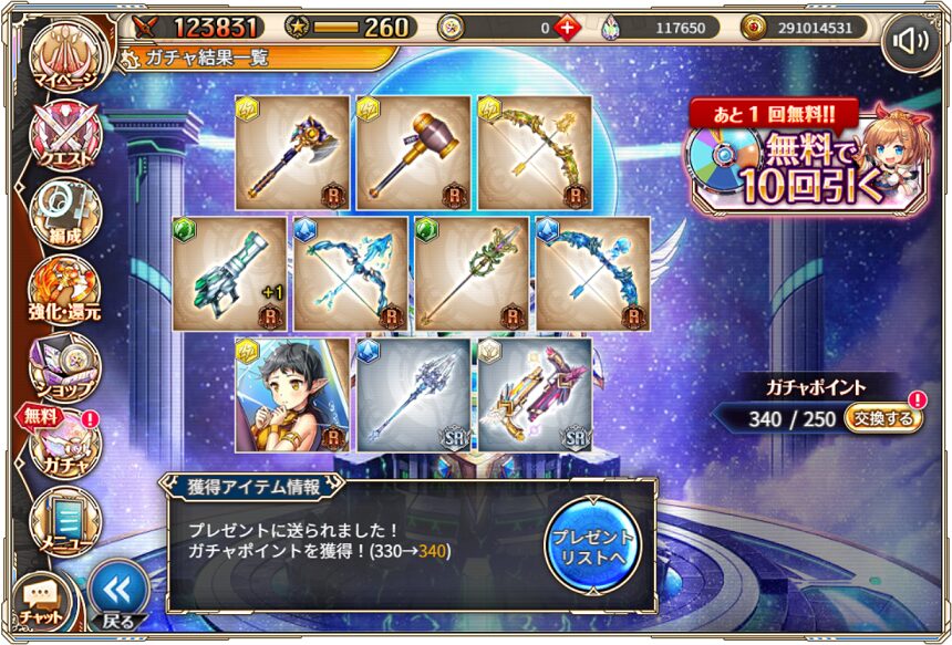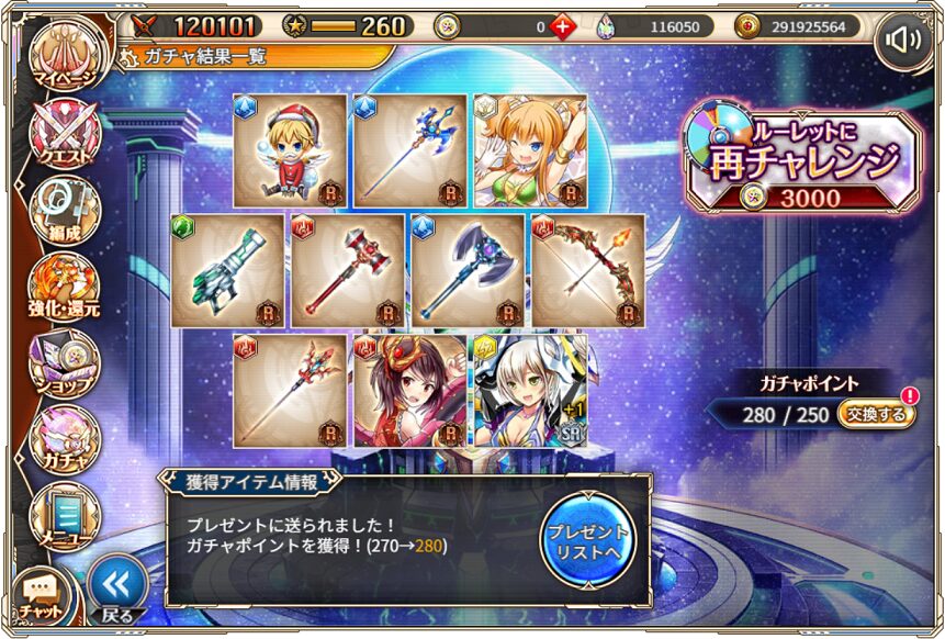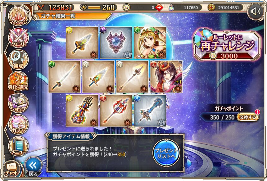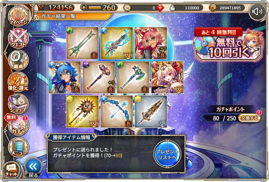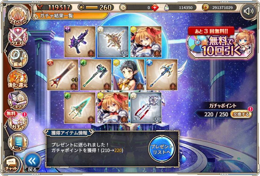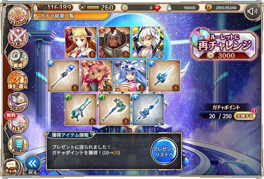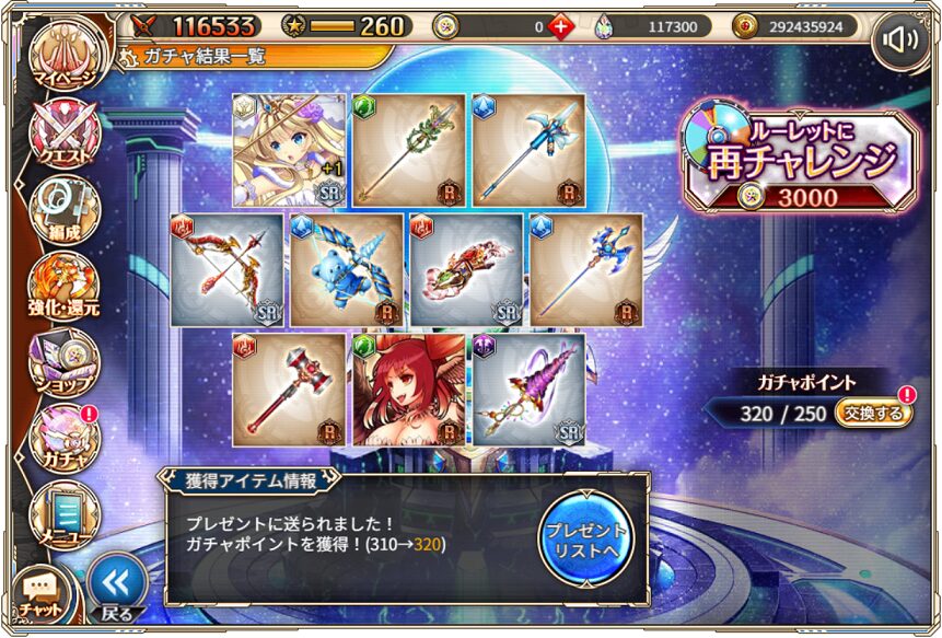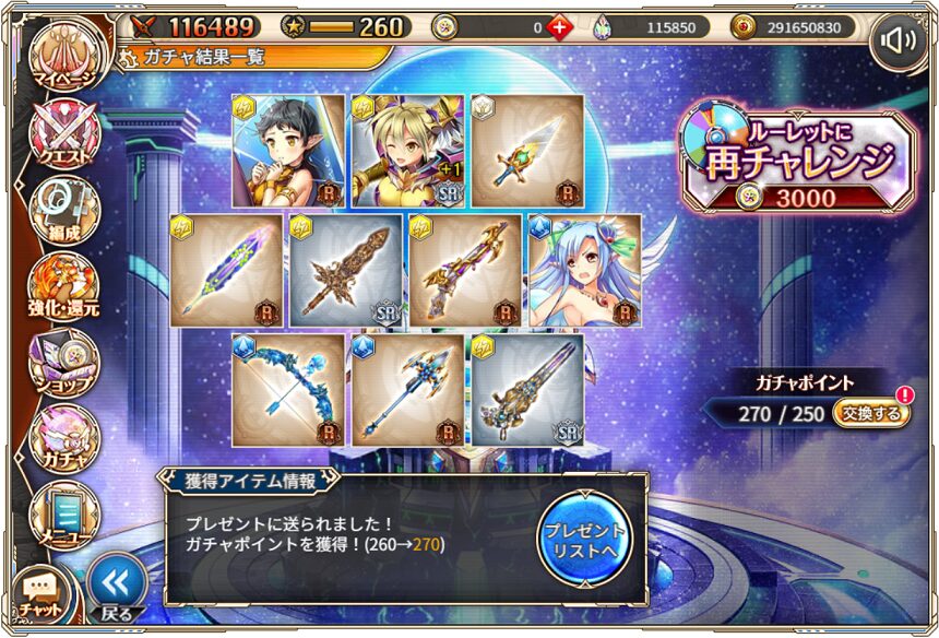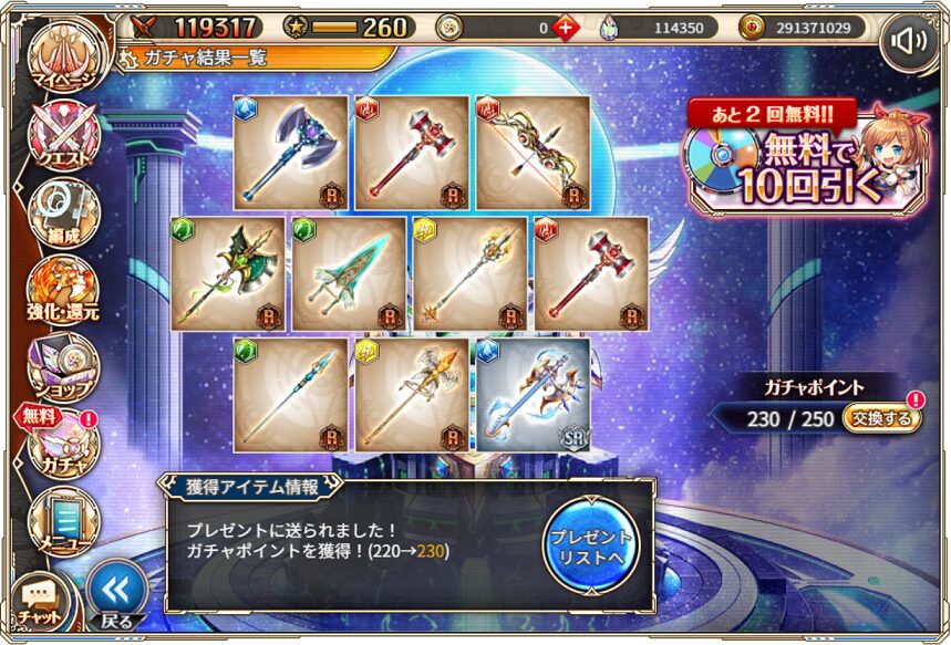 無料ガチャ360連の成果はSSR神姫8体&SSR幻獣5体でした.