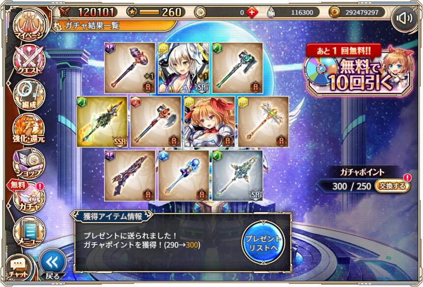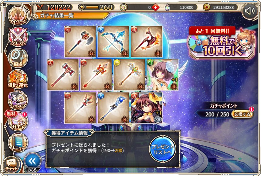 今回は私のプレゼントルーレット対象!10周年スペシャルガチャ(後半)の結果を記します.