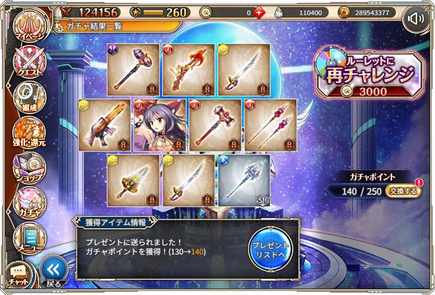 5. 4月16日の無料ルーレット10連ガチャ結果(通算140連)
