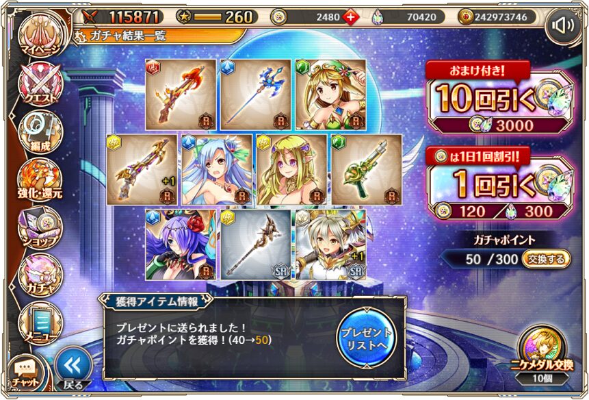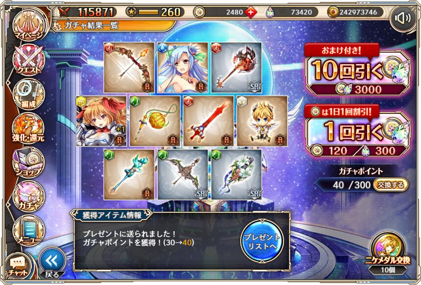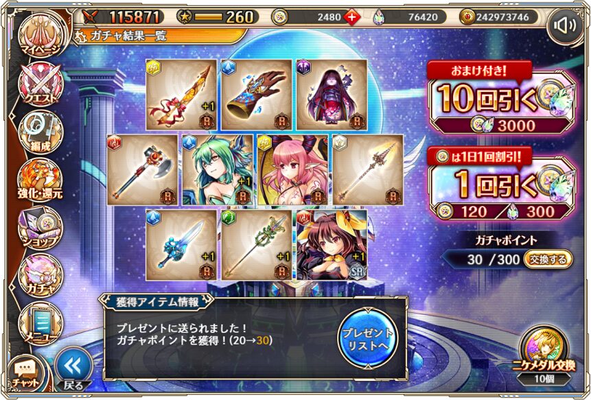 半年前にコレクションガチャで300連SSR1回(しかも,ピックアップ4人のうち唯一持っている神姫被り…)を経験してしまったので不安を感じやすくなっているようです.