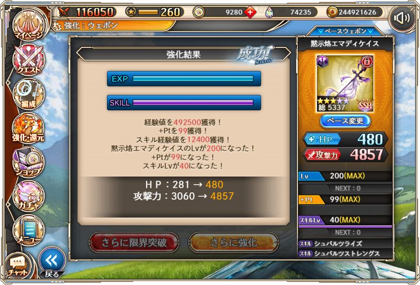 なので,雷属性の強化が終われば神龍眼を貯めて再びスペシャルミラチケを目指せそうです.