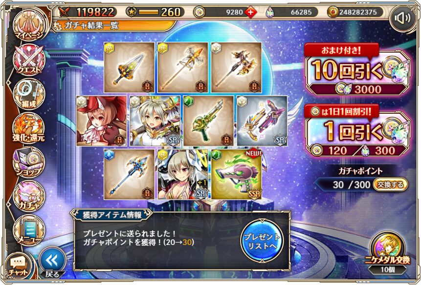 コレクションガチャは30連くらいでSSRを引けるくらいがちょうど良いですね.