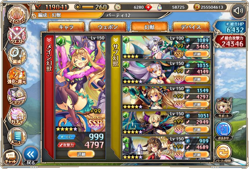 2024年12月時点の幻獣の編成は下記画像のような感じでした.
