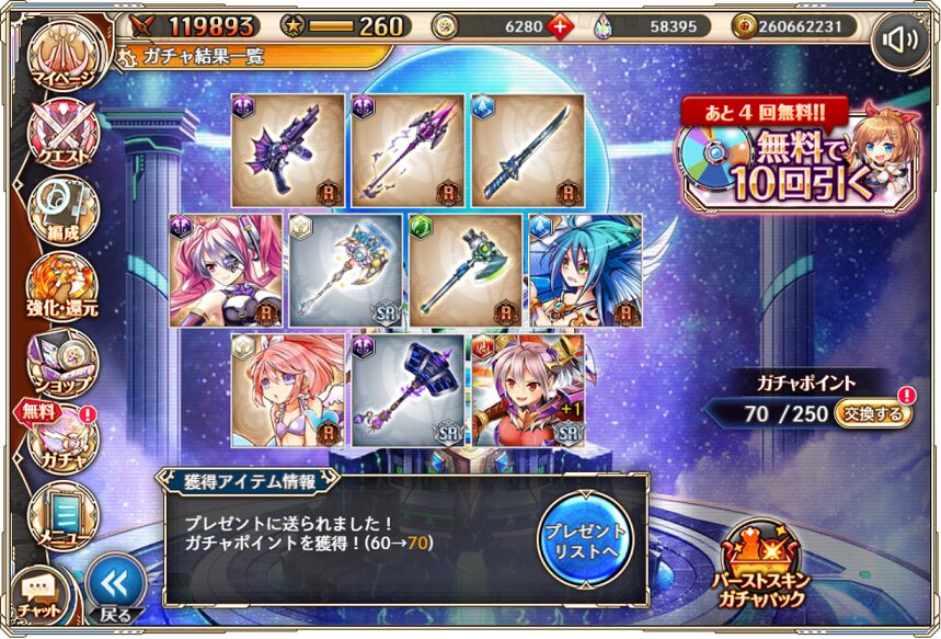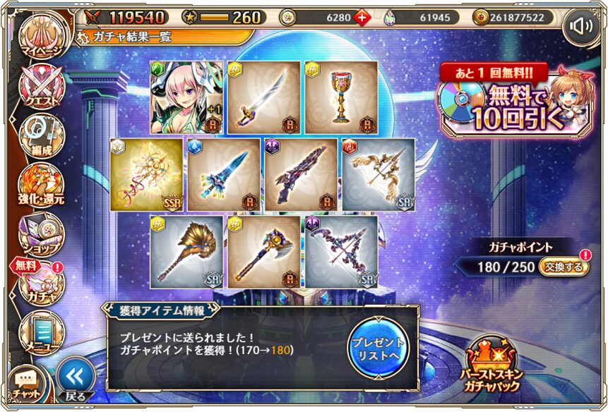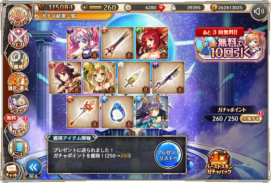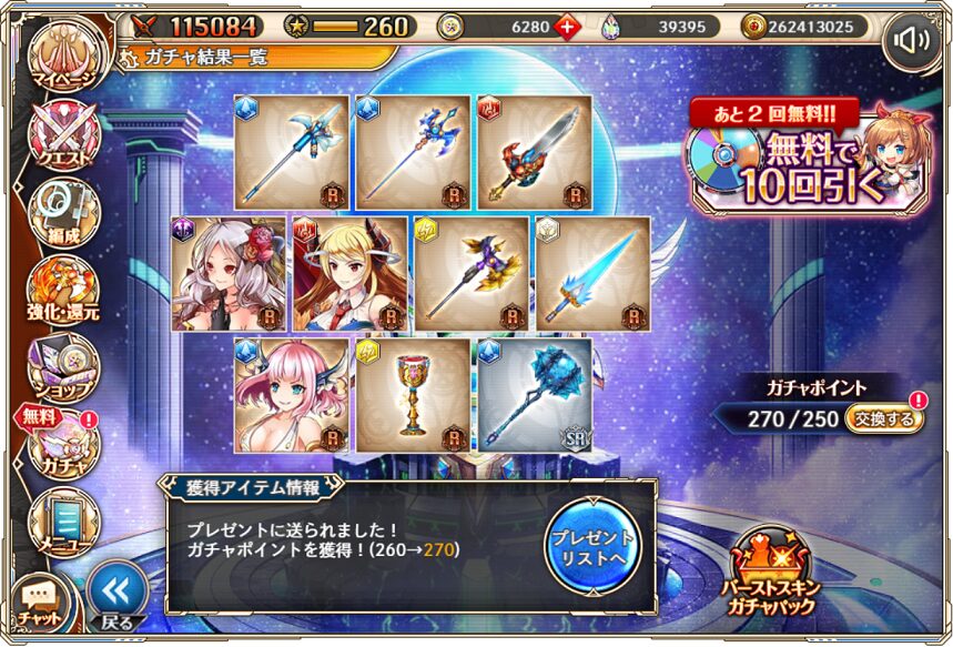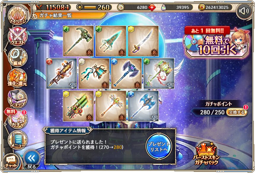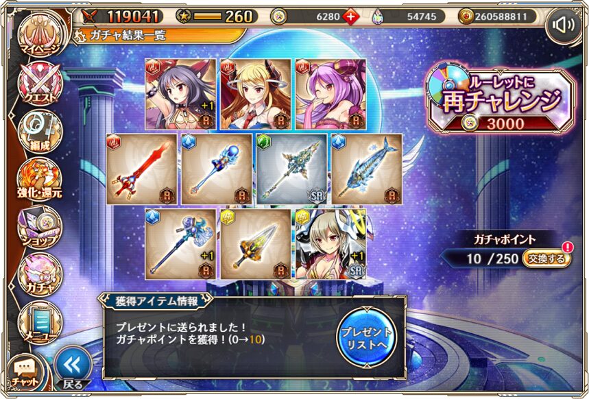 11. 1月10日の無料ルーレット10連ガチャ結果(通算290連)
