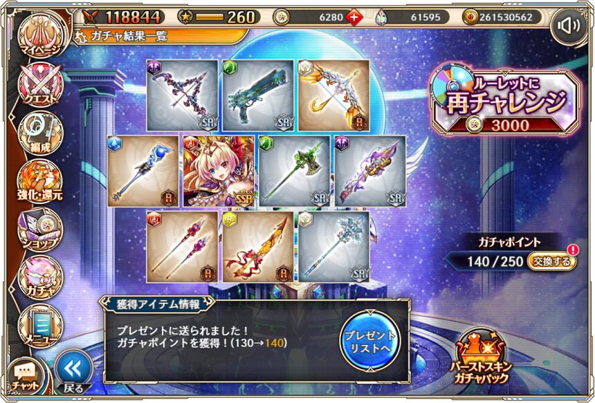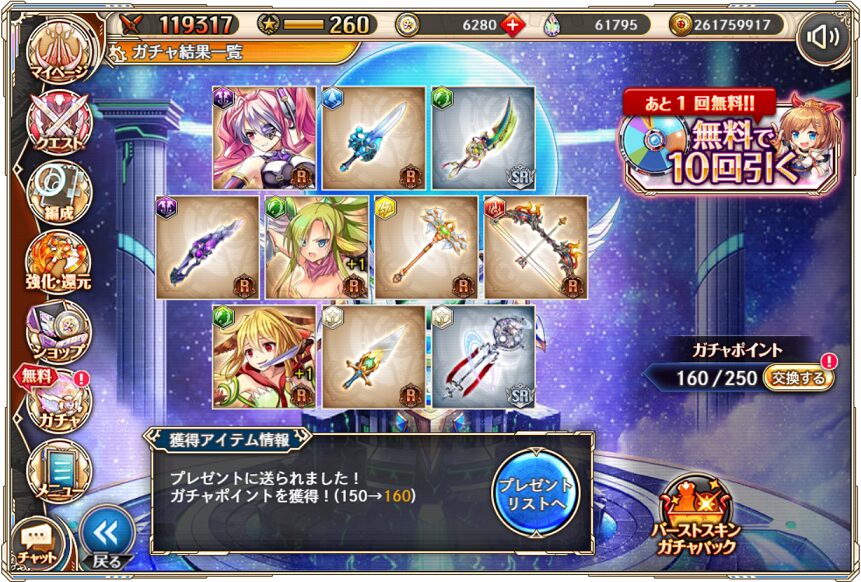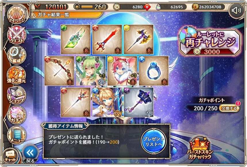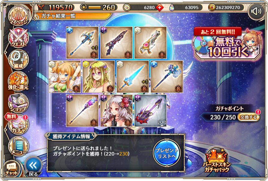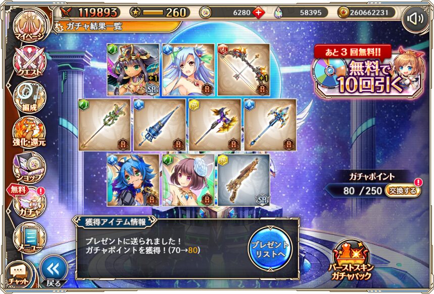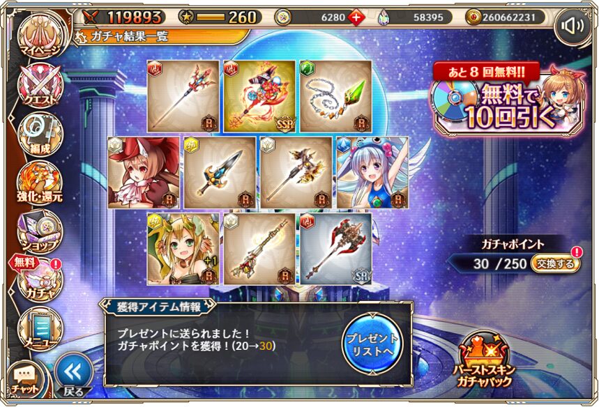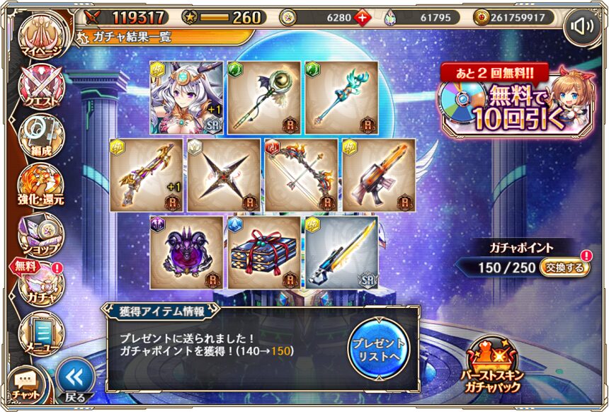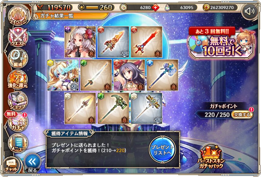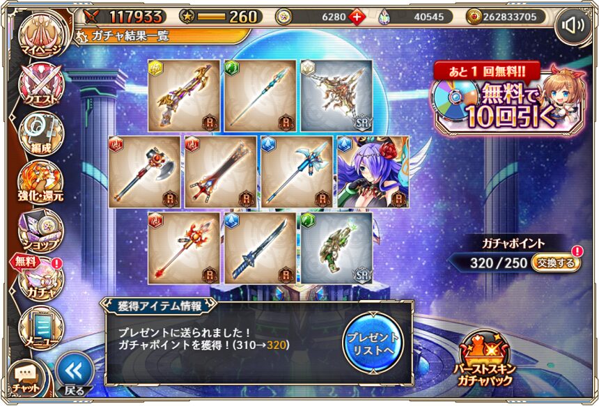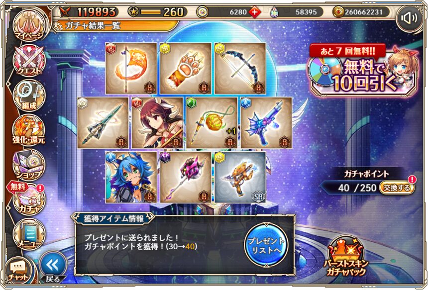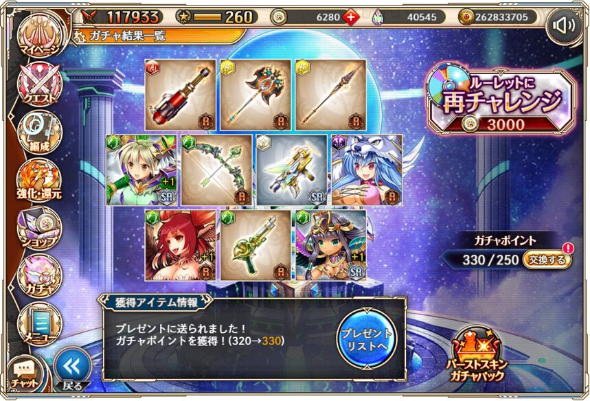無料ガチャ330連の成果はSSR神姫3体&SSR幻獣4体でした.