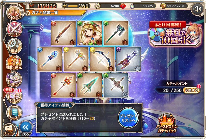 10. 1月9日の無料ルーレット10連ガチャ結果(通算240連)