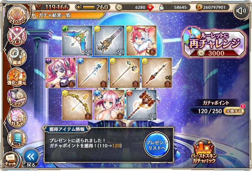 4. 1月3日の無料ルーレット10連ガチャ結果(通算120連)