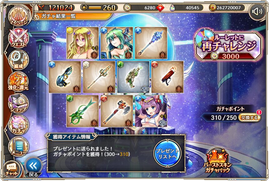 14. 1月13日の無料ルーレット10連ガチャ結果(通算310連)