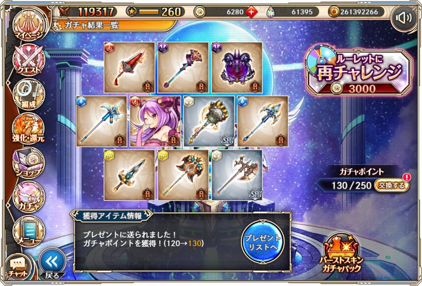 5. 1月4日の無料ルーレット10連ガチャ結果(通算130連)