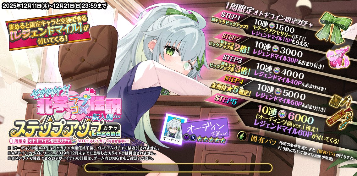 2025年12月11日からオーディン学園ver.をピックアップしたガチャが始まりました.