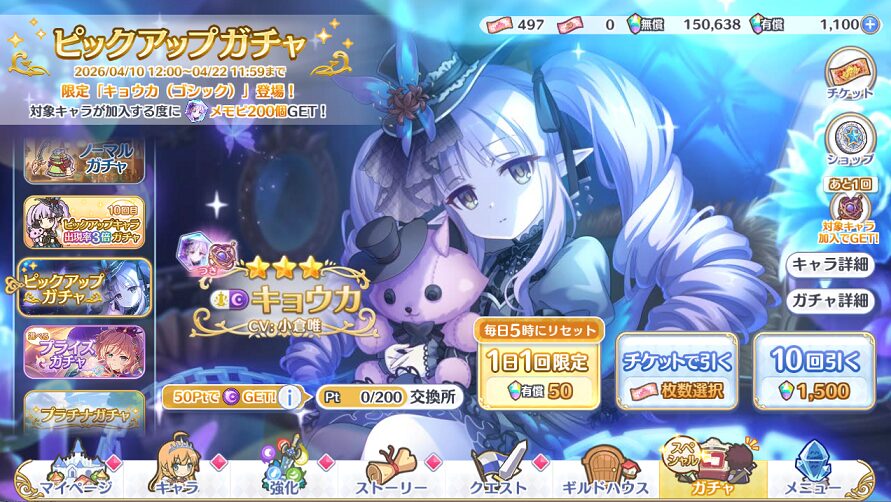 今回は130連でキョウカ(ゴシック)を入手出来ました.