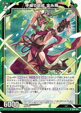 例えば,2ターン目にコスト3のリゲルをプレイして相手PSのスタートカードを破壊,≪楯≫創展 あづみでシールドを得た後に蒼空創成 リゲルで1点取って,手繰る鋭絃 金糸梅をレイドで登場させてリソブとかですね.